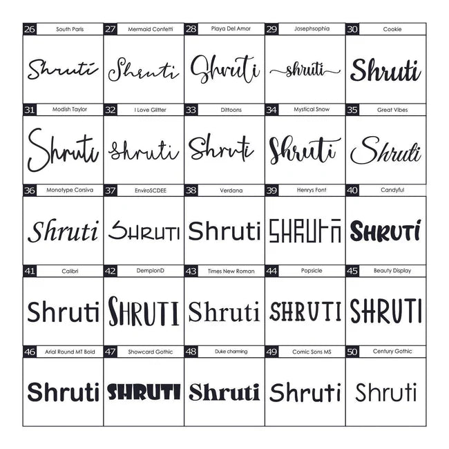 - Different font options will be given to the customer. Font Colors also can be customized, if needed.
